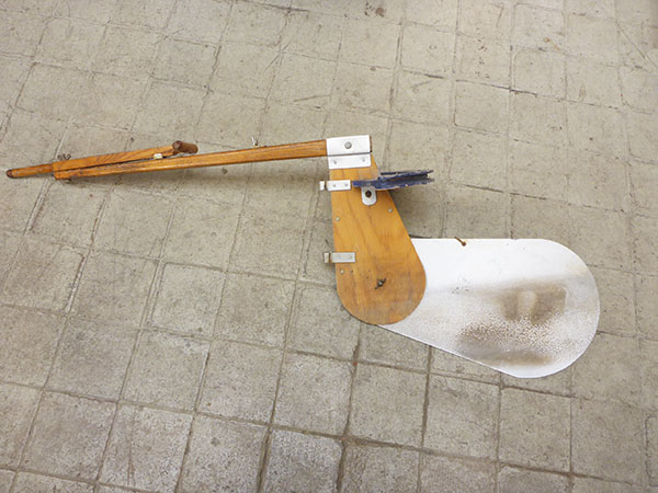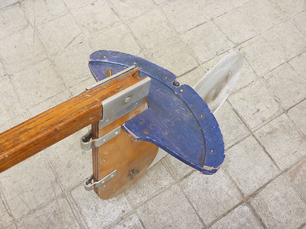 Steuerblatt mit Segelpinne und Seilzugumlenkung