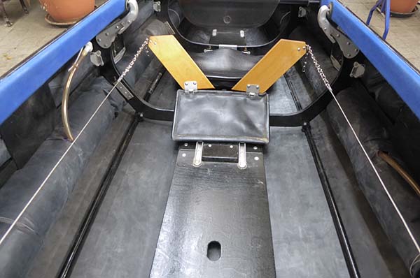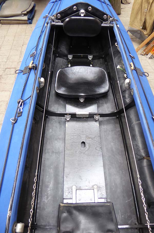 Unterschiff Hypalon-Haut, mit drei Kielstreifen. Im Unterschied zum normalen Aerius II hat der Quattro vier Luftschläuche.
