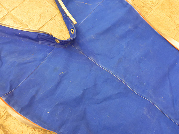 Stoff ist ganz und fest - das Gummimaterial ist verhärtet.