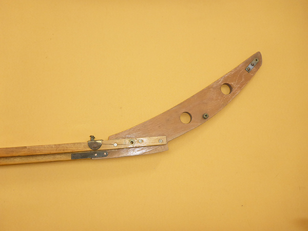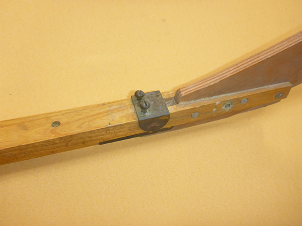 Bei diesem Pionier 450 S sind die Stützstreben eckig und werden an zwei Bolzen auf dem Steven befestigt. Bei späteren Modellen sind die Stützstreben rund und sitzen beide auf einem Bolzen.