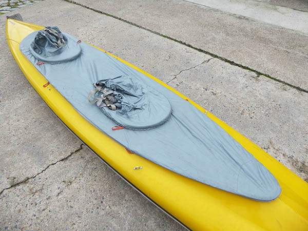 originale Spritzplane für Kajak Klepper Kamerad TS Zwei Luken mit Spritzschürzen.